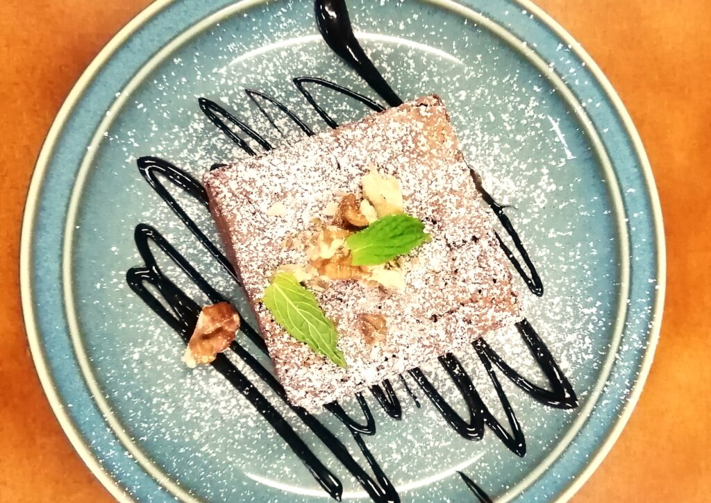 くるみのざくざくとした食感がアクセントになった「グルテンフリー・ブラウニー」。