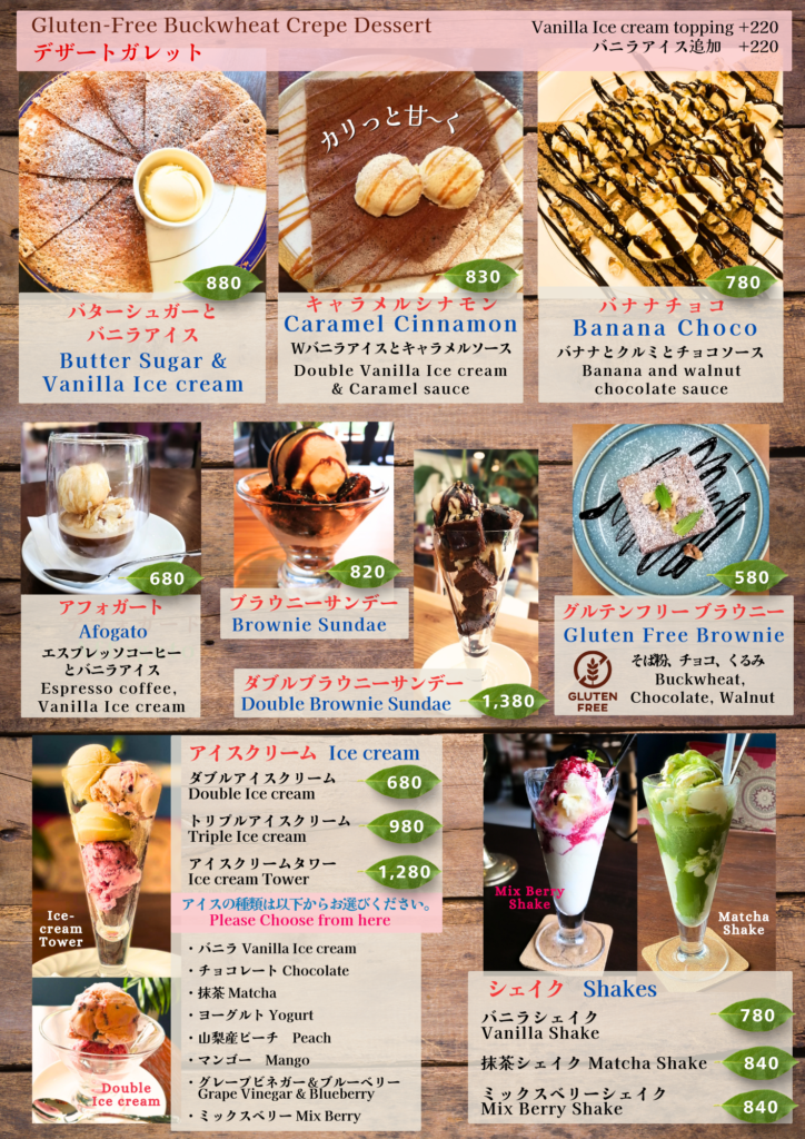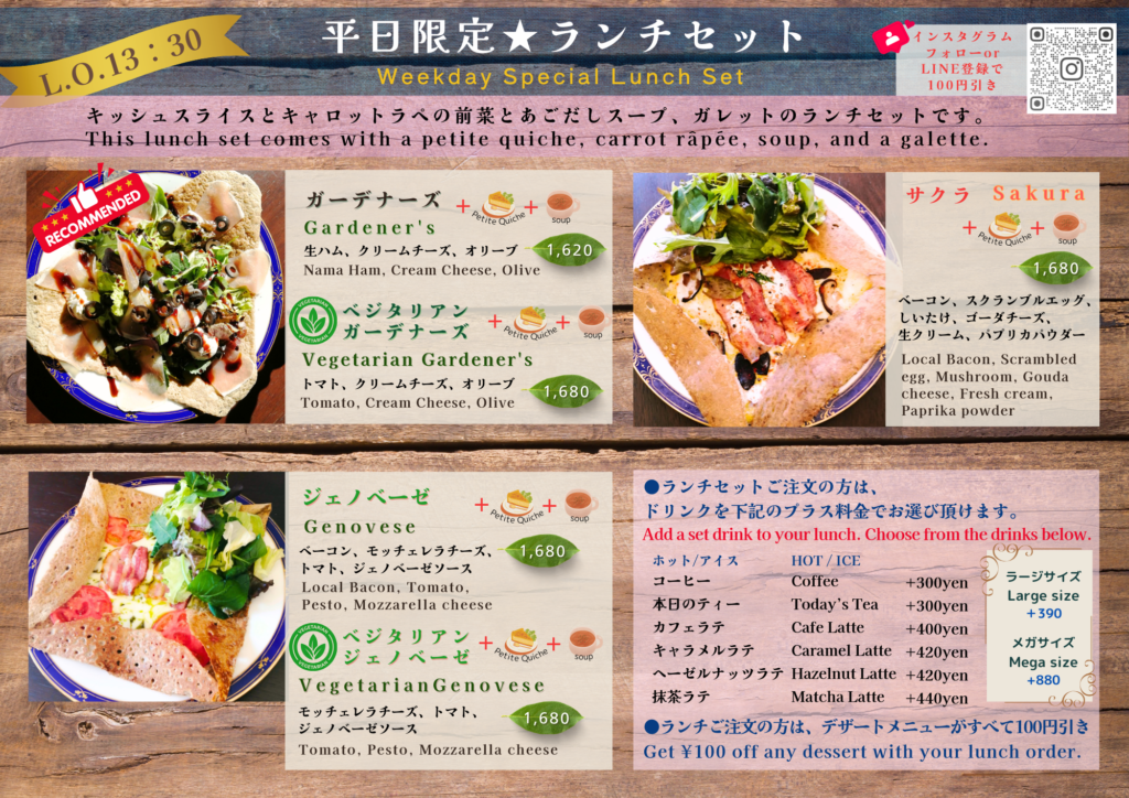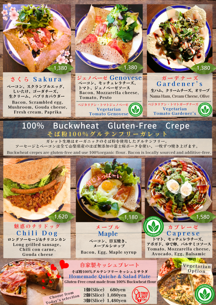 どのお時間もガレットやキッシュなどのお食事・デザート等を召し上がれます。